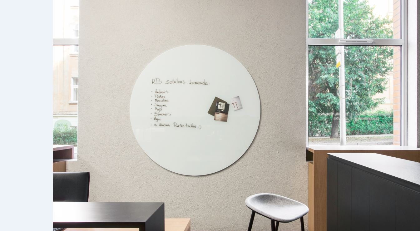 Magnetinės rašymo lentos pagamintos iš stiklo atlieka savo funkciją kaip rašymo lenta ir magnetinė lenta viename, taip pat suteikia patalpai elegancijos. Stiklinė magnetinė lenta gali būti įvairių spalvų, formų ir dydžio.